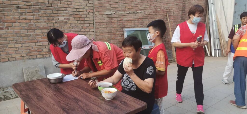 爱心粥总部以及保定市公益志愿者协会派出的志愿者们为环卫工人、老年人热情服务,现场其乐融融、宛如一家。